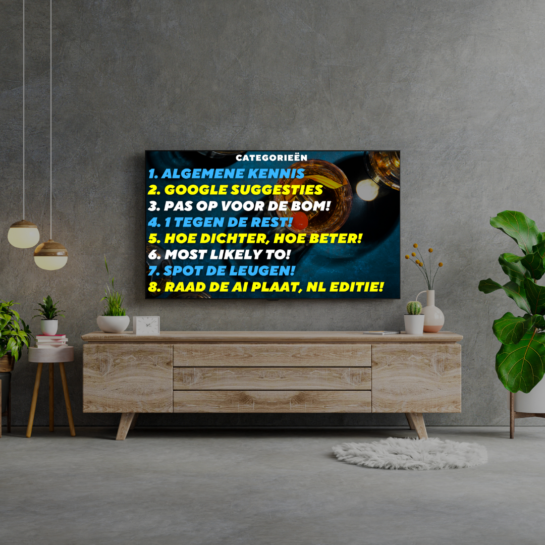 De 60 minuten editie heeft minder vragen en break-rondes dan de 90 minuten. Hierdoor kan je je eigen tijd kiezen en kiezen wat het beste bij jouw avond past.
